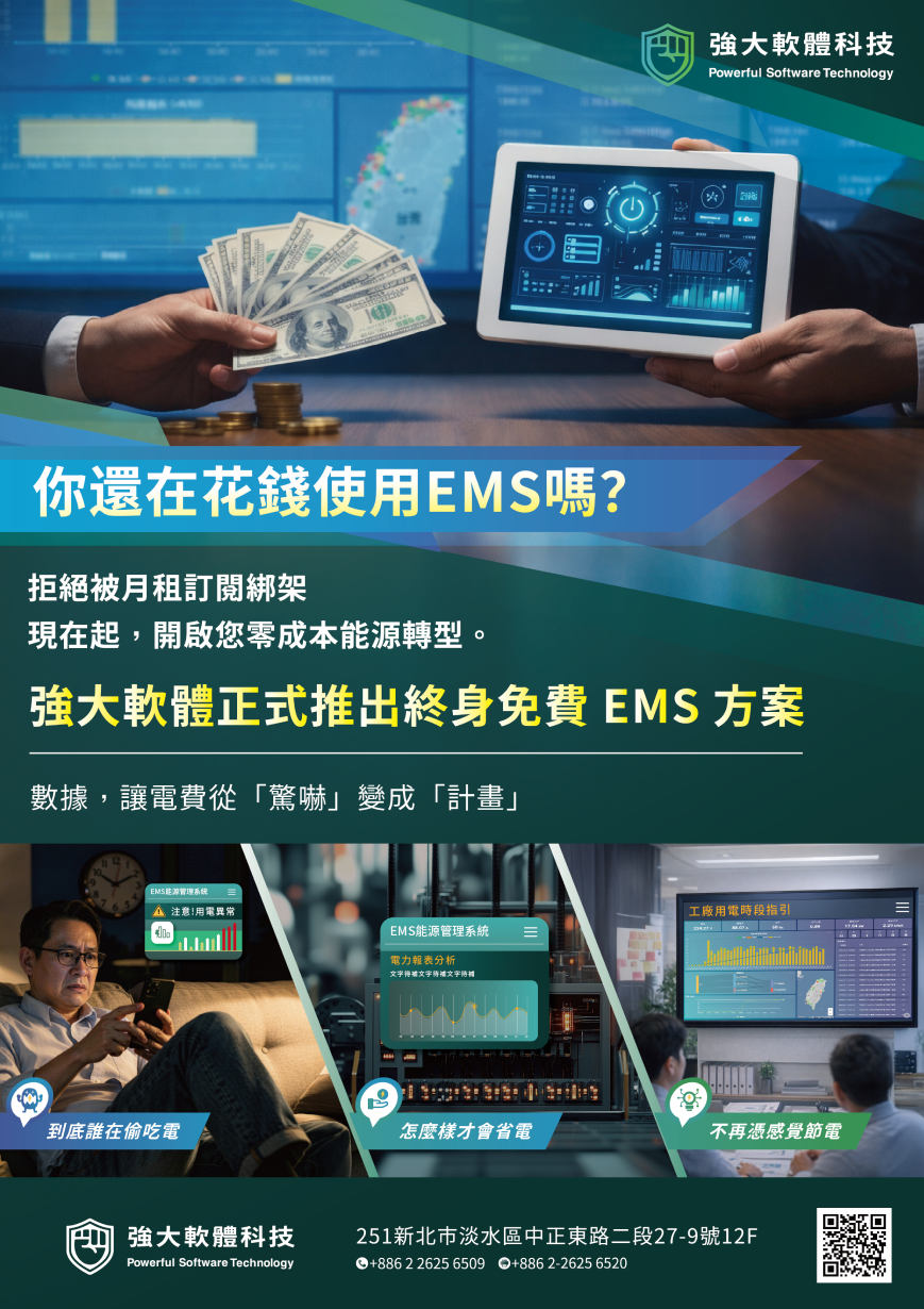 在全球邁向淨零排放的關鍵時刻,數位轉型(DX)與綠色轉型(GX)已成為製造業與大型通路的核心戰略。身為工業物聯網(IIoT)與智慧能源管理系統(EMS)的領航者,強大軟體科技股份有限公司憑藉深耕工業現場的實務經驗,將複雜的能源數據轉化為企業決策的關鍵競爭力,引領產業在節能、合規與營運效率之間取得完美平衡。 從監控到預測打造高度模組化的能源數據平台 強大軟體由自動化監控起家,我們深知工業環境的破碎性與複雜度。因此,我們將多年的工程經驗淬鍊成高度模組化且可快速複製的能源數據平台。我們的核心產品不僅協助電子製造、紡織與連鎖通路等,將電力、水、氣、油等能耗全面數位化,更進一步整合至單一管理看板。隨著全球減碳壓力升高,強大軟體更協助客戶接軌 ISO 50001 標準並導入 AI 預測維護。這讓能源管理不再只是被動的歷史紀錄,而是具備預測性、可優化的決策工具。 低摩擦導入打破工業現場的轉型門檻 「導入門檻」往往是企業數位轉型的最大阻礙。強大軟體以「快速接入、低摩擦導入」為研發核心,提供以下優勢: ➡️強大相容性: 支援超過 50 種感測器與多元通訊協定,企業無需汰換既有設備即可上線。 ➡️秒級監控能力: 告別傳統人工抄表,系統具備秒級偵測與警示功能,能即時防止瞬間過載與超約罰金。 ➡️彈性視覺化設計: 針對管理者、工程人員與決策層,提供客製化看板與報表,確保能源數據在日常營運中「可被驗證、可被使用」。 應對 ESG 與 CBAM從數據基礎延伸碳資產管理 面對歐盟碳邊境調整機制(CBAM)與 ESG 評鑑壓力,企業需要的是一套具延續性的系統。強大軟體正將 EMS 系統升級為碳資產管理平台,利用既有的即時能耗與生產數據,自動計算單一產品碳足跡。這不僅能大幅減輕行政負擔,更能快速產出符合國際規範的報告,讓綠色轉型自然融入企業基因。 「能源管理不該是抽象的口號,而是可量化的具體成果。」 創新策略「EMS 零成本轉型方案」降低企業風險 為了推動能源管理普及化,我們打破市場常規,推出「EMS 零成本轉型方案」。此方案旨在協助企業在無須先行承擔龐大專案預算的情況下,直接在真實工業現場驗證數據價值。企業可針對最耗能、最關鍵的設備優先部署監測點。透過實際運行的秒級數據,管理者能親眼見證系統如何協助預警與決策優化。當企業建立數據視角後,再依數位成熟度彈性擴充,有效降低一次性投入的組織抗性與技術風險。 能源資產化智慧調度與虛擬電廠(VPP)應用 在能源應用層面,強大軟體更進一步將 EMS 與儲能系統及虛擬電廠(VPP)整合: ✅製造業: 透過智慧調度降低電費成本。 ✅零售服務業: 整合分散式據點參與電力輔助服務市場,創造額外收益。 ✅高科技與醫療業: 提供主動式電力韌性管理,確保供電穩定。 展望未來成為企業永續營運的最佳夥伴 未來,強大軟體將持續深化 AI 分析、跨域整合與國際化布局。在淨零轉型從「選項」變為「生存條件」的時代,我們將以穩健的技術與實務經驗,協助企業在節能減碳的同時,掌握數位資產的新商機,共創永續競爭力。 📰新聞來源:TCA會員企業專訪 -強大軟體